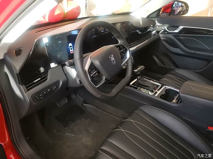 里面首先我就看到了皮革座椅,圆滑的缝线设计让黑色的空间一点都不单调,坐在主驾位,眼前的中控大屏,特别大,两块连在一起,适合追剧 ,嘿嘿,此车还带智能网联功能,能直接上网看呢。