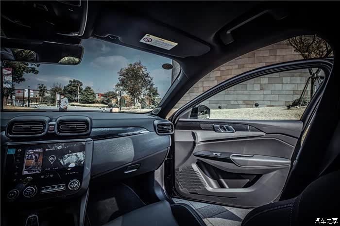 10.2寸的中控屏也采取了向驾驶员倾斜的设计,不仅造型别致,辨识度高。车门用料也很足。