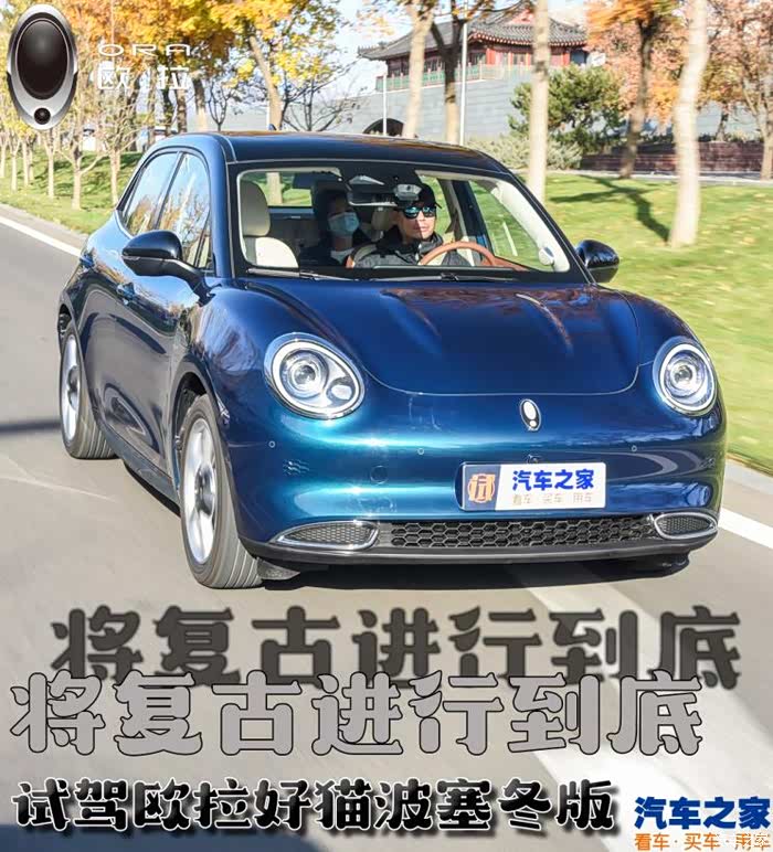 欧拉好猫整体采用了蓝色+白色的撞色设计,并在多处加入镀铬元素进行妆点,视觉效果出色。同时,新车配备了由全液晶仪表+大尺寸中控液晶屏组成的一体式屏幕,搭配旋钮式换挡机构以及双辐式多功能方向盘,科技中又带有复古的味道。