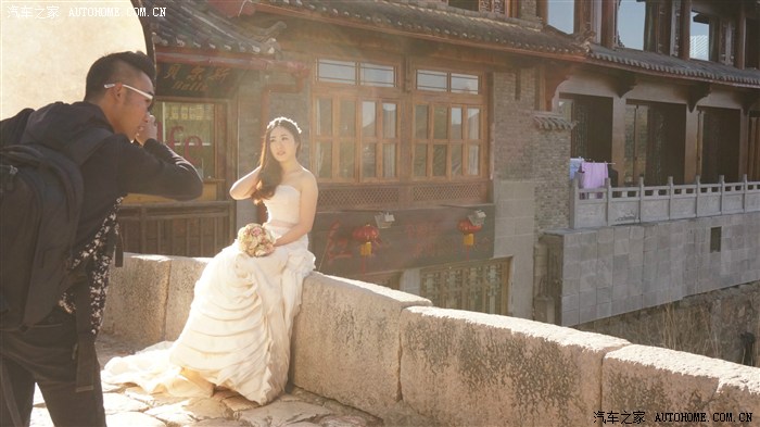 路遇一对新人古桥上照婚纱照, 幸福的小两口祝福他们吧!