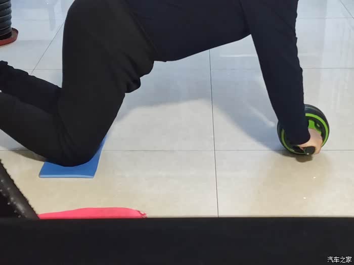 使用时,双膝跪在垫子上,双手攥紧握把,尽最大努力向前推轮子,确定以到极限后,再往回撤,如此往复,达到一定水平后可以以脚尖为轴。
