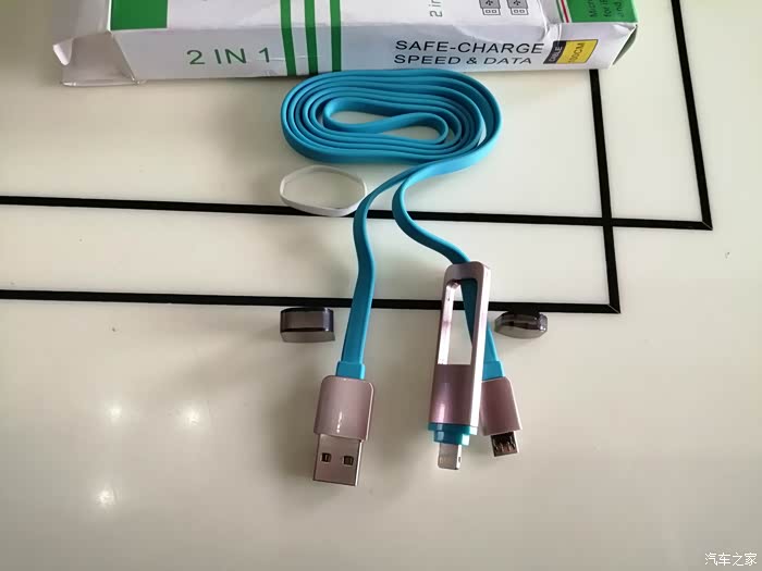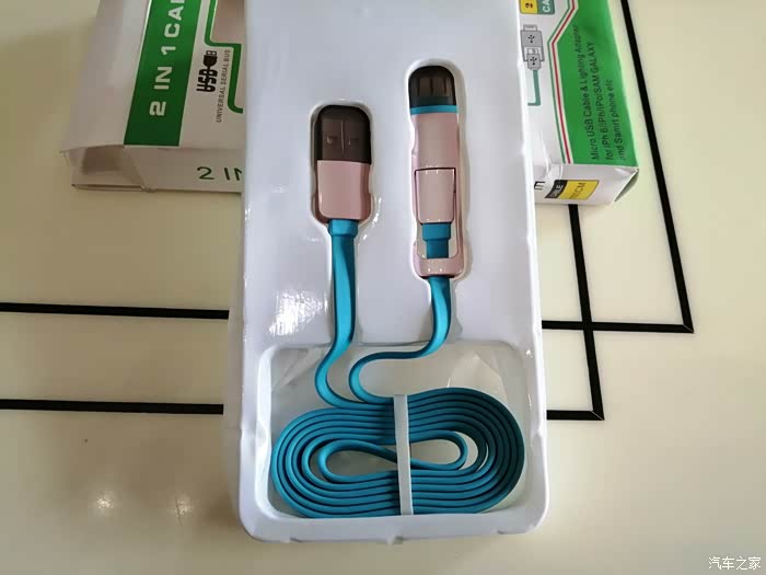 今天我为大家展示的是一款二合一数据线。我们日常使用的移动电子设备中比较常见的就是苹果系列和安卓系列,两种设备由于设计不同因此充电接口也不一样,造成彼此的充电数据线不能互用,平常居家使用时没有觉得不方便,在我们出外游玩时把各自的数据线都给带上又比较麻烦,有时候还容易弄丢.