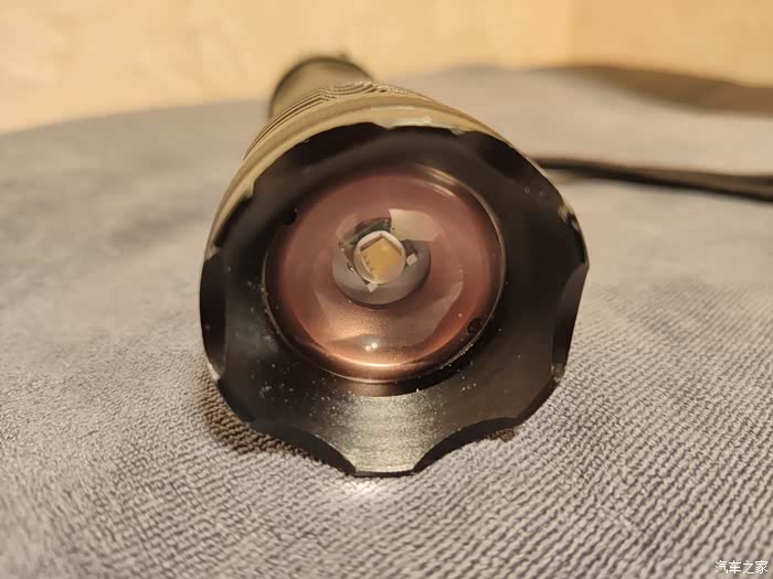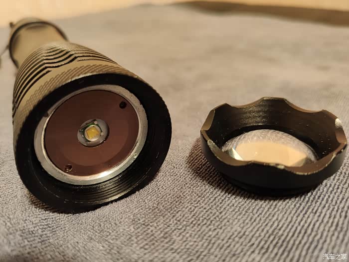 前面的凸镜是可以拧下来的,可以看到里面的LED的灯珠,点亮之后你很难想象到这么一颗小小的灯珠竟然可以发射出如此巨大的光芒。