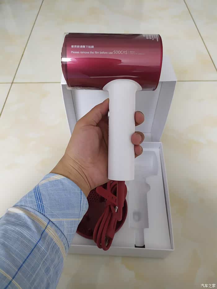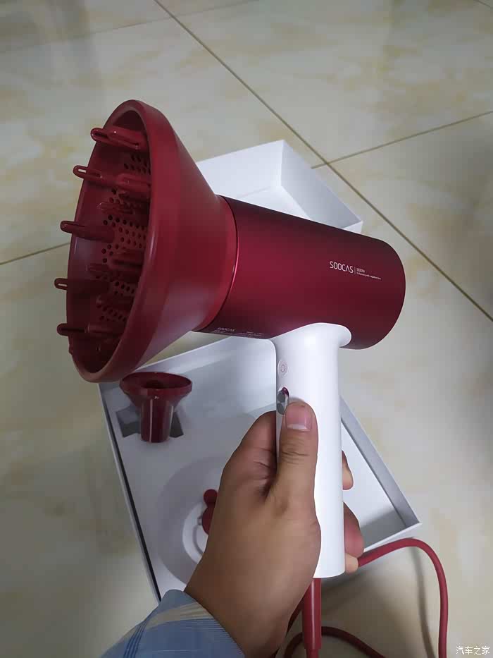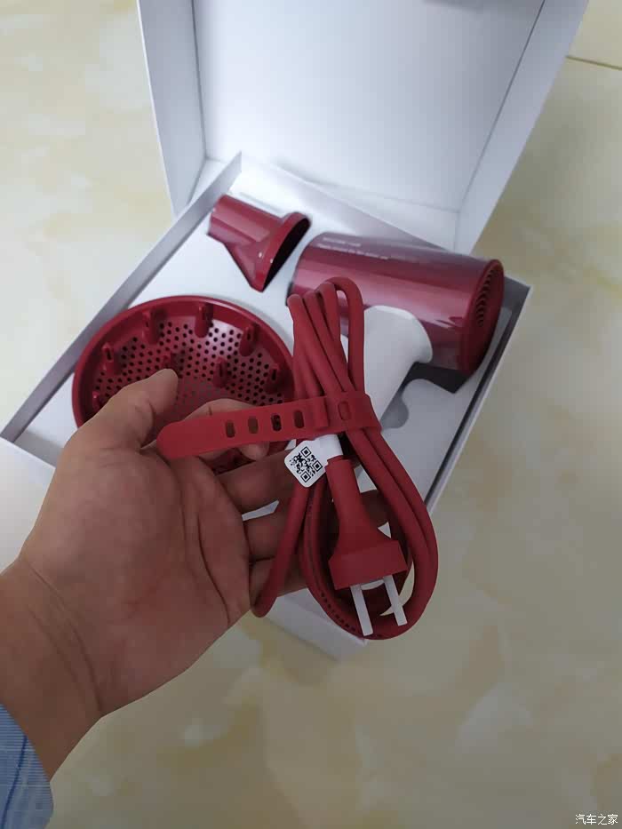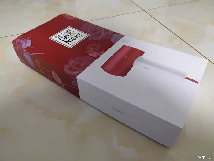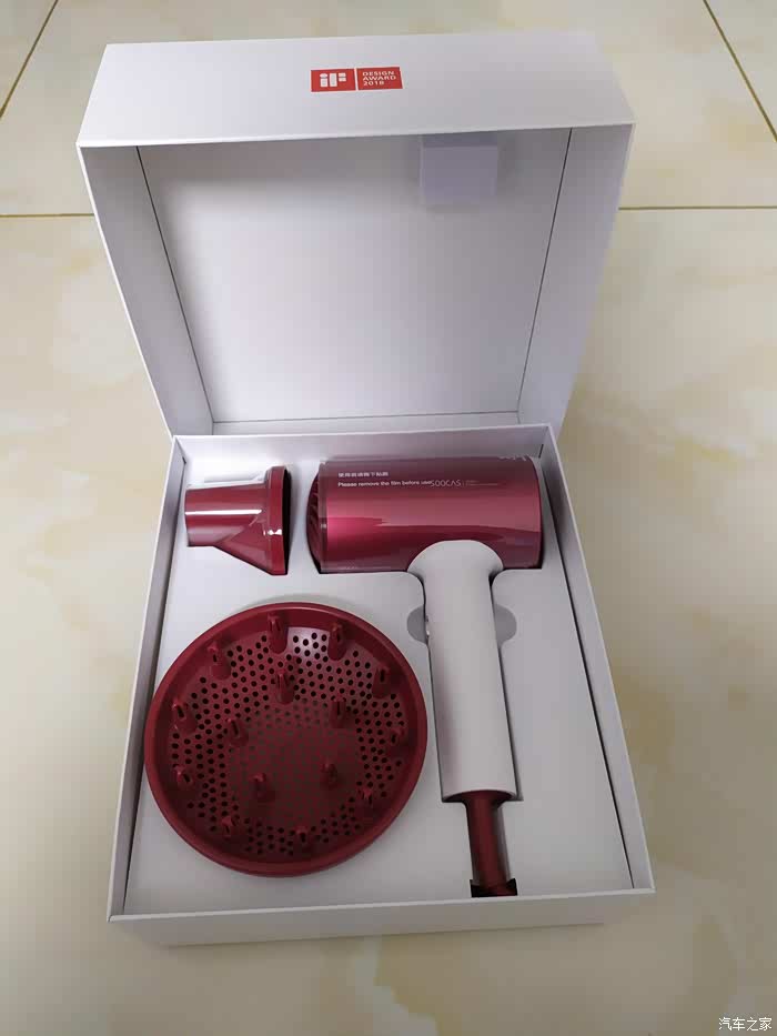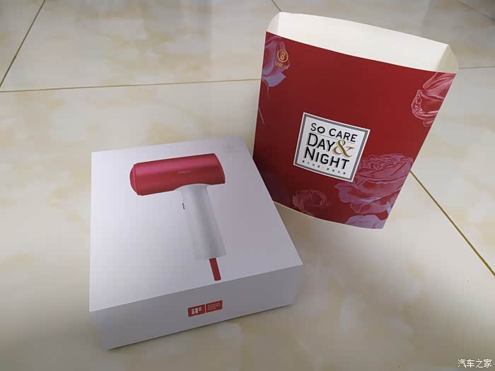 这就是这款电吹风的外包装,因为是女神版,所以颜色就是很喜庆的红色。当然,这一个型号还有其他版本,那就是其他颜色了。