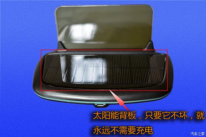 此款HUD为太阳能供电,有光的地方就能为HUD提供源源不断的电能,电池这一块也不用担心。