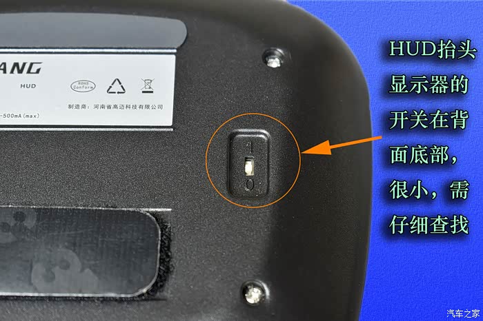 HUD抬头显示器的开关很小,小到完全内陷,需要仔细查找。开关0为关闭,1为开启。