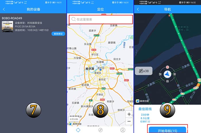 在绑定了HUD设备后,就可以通过手机APP软件进行导航操作了。