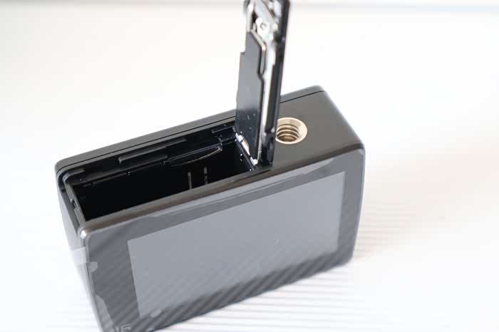 滑动打开电池仓,SD卡和电池在一个仓内