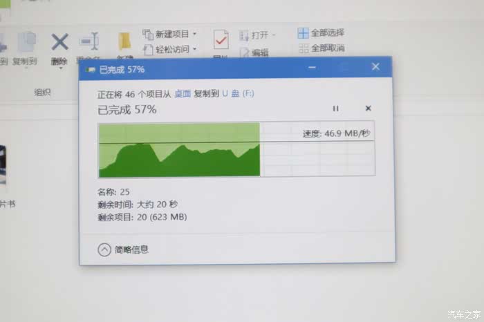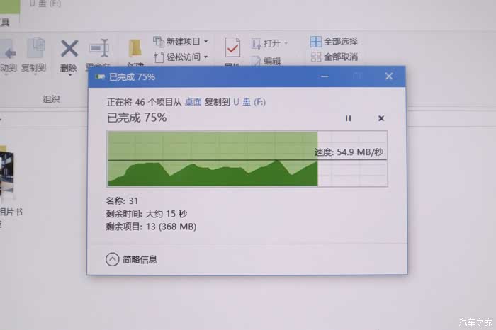 找个比较大的文件拷贝一下看看,我的读卡器是USB3.0接口,电脑接口也是3.0 存储速度由慢变。