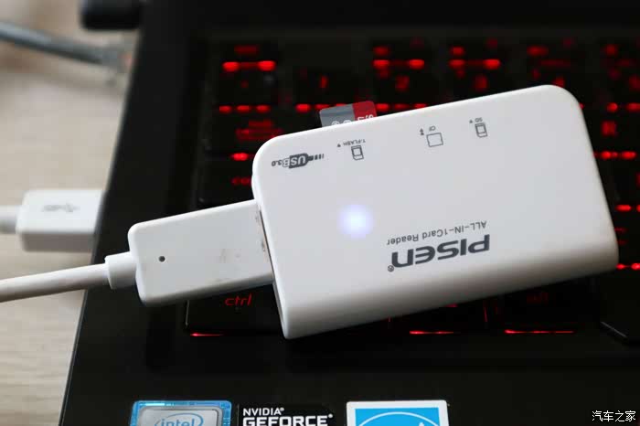 插入电脑,读卡器指示灯亮了。