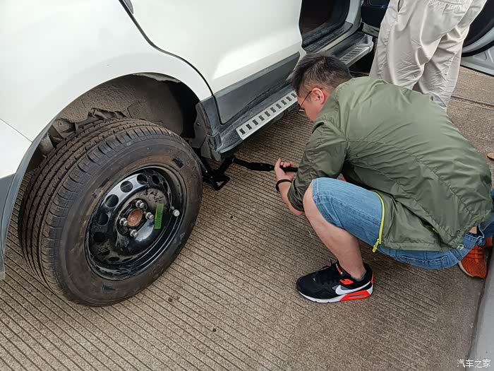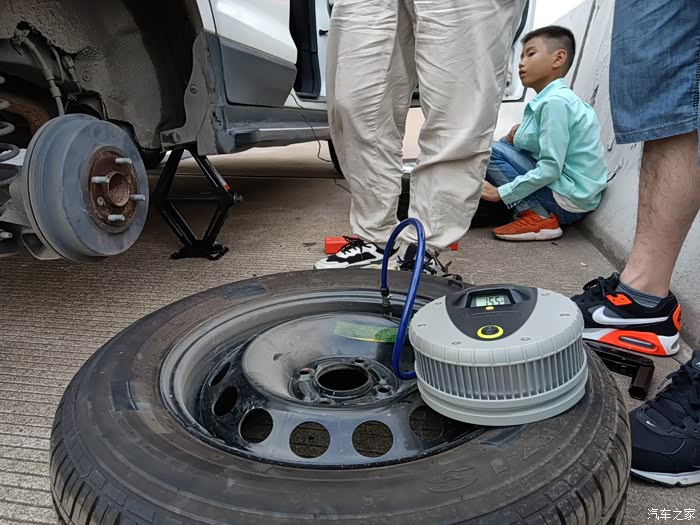 速度更换备胎,因为备胎从买车到现在都没打开看过,所以,早就没气了,需要打气。这款米其林打气筒很给力,备胎胎压从0.1bar打到2.5bar大概只花了3分钟吧。