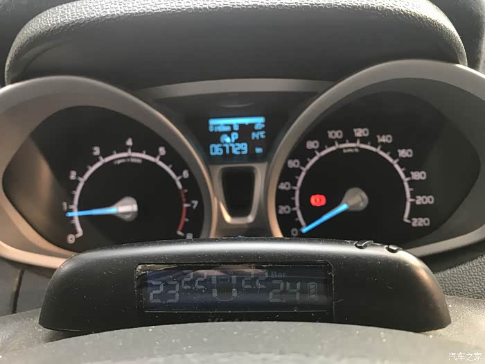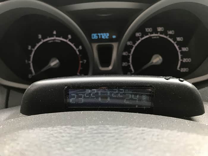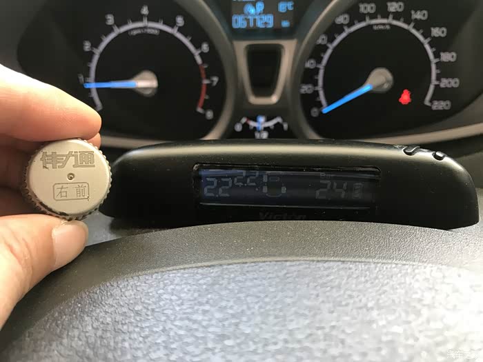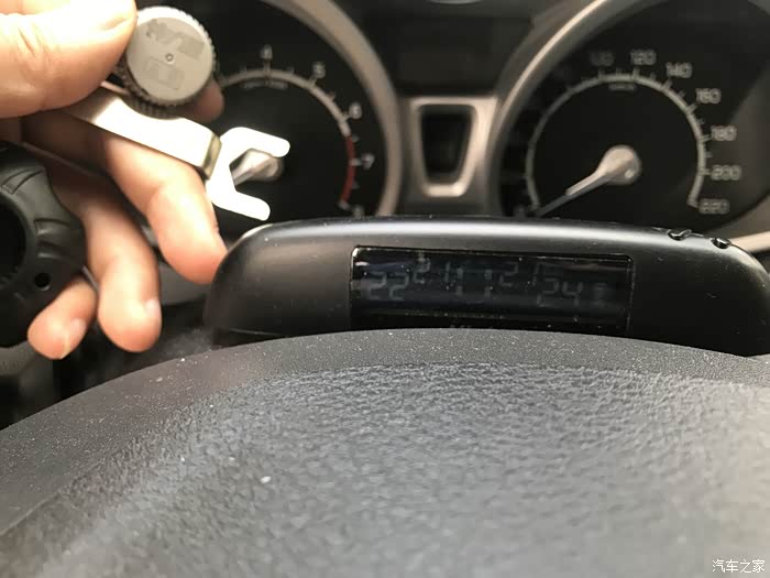 这个原理很简单,车辆静止状态下,这个主机是不运行的,省电模式。所以,我把车子启动,开动了十几米,胎压立刻报警了,急促的嘀嘀嘀声音,停车,拍照,右前轮的数值已经没有了。说明还是很灵敏的。