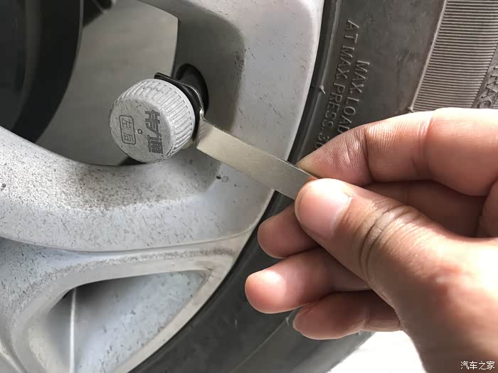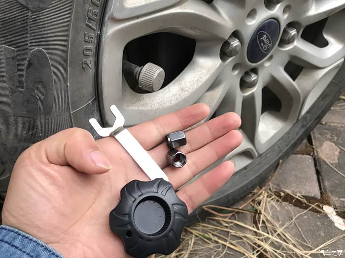气压打到标准值后,再把右后轮的胎压测点拆装到这个备胎上,保证备胎在后面的使用过程中继续得到胎压监测保障,安全!这个是内置胎压检测器无法实现的。
