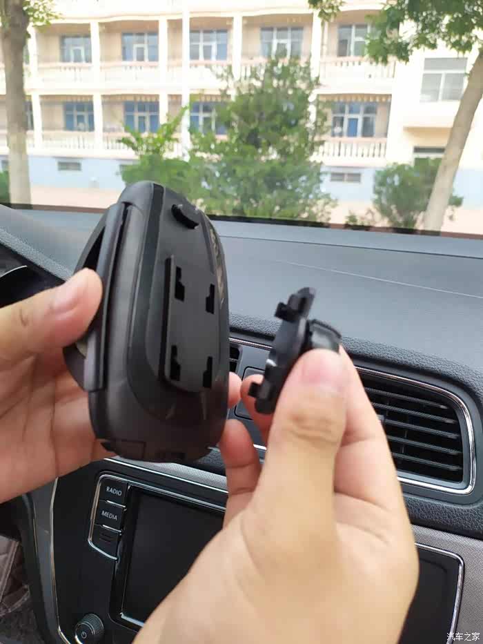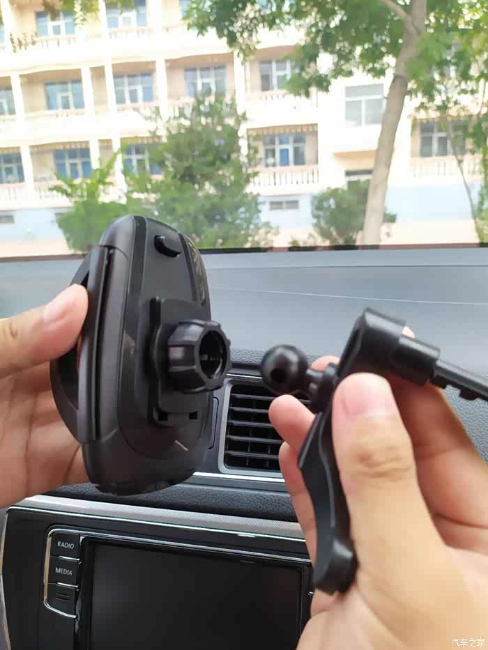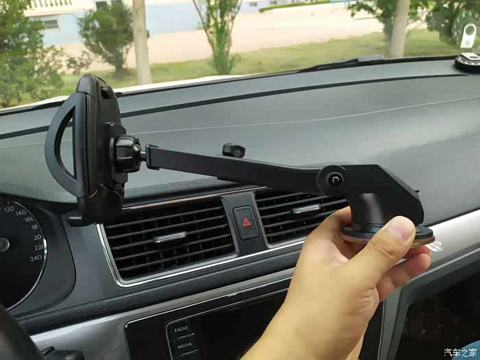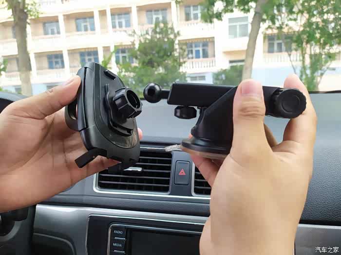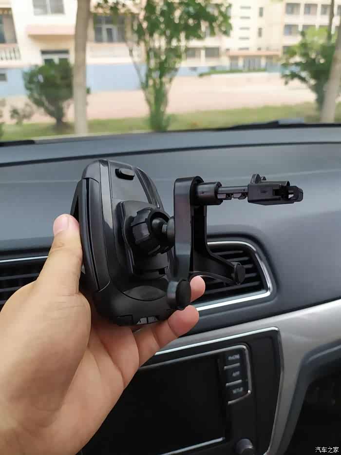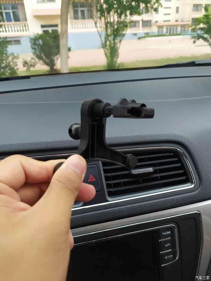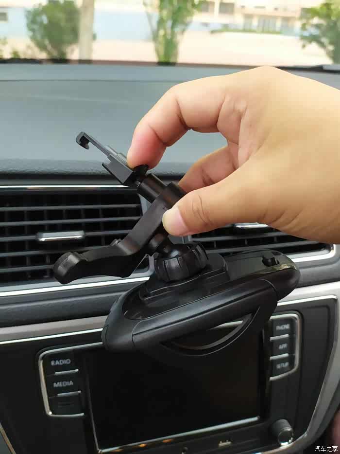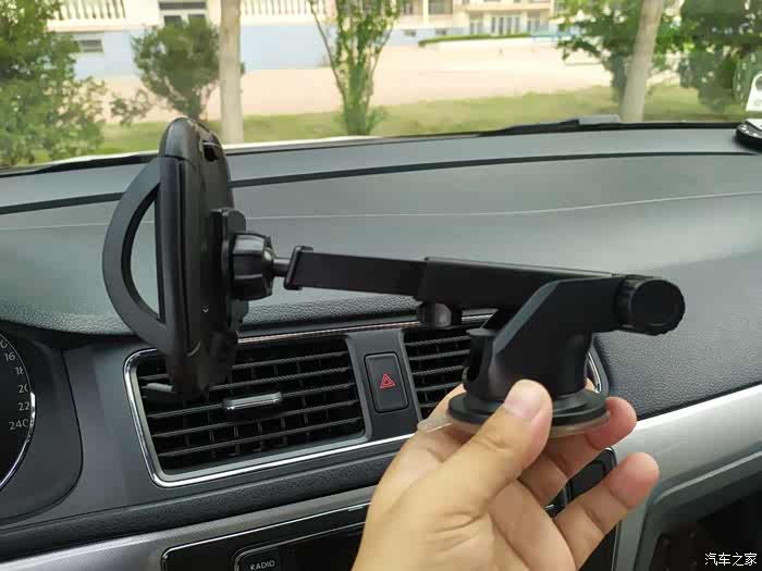 空调支架式的使用就是这样了,还不错,但是我总怕支架会把出风口格栅压坏,我准备使用另一种中控台吸盘式安装方式。