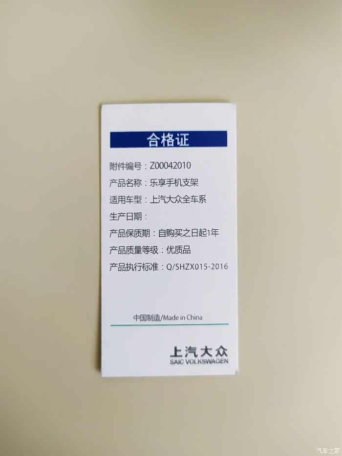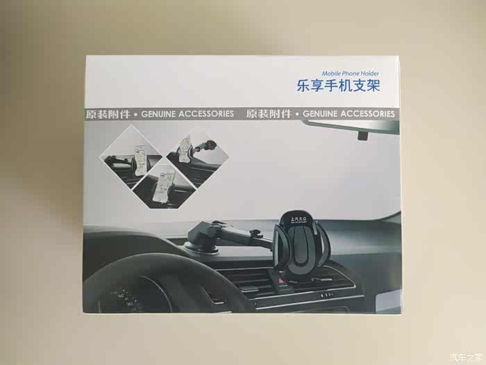 这就是今天和大家分享的乐享手机支架包装盒正面,这是一款上汽大众的原厂附件,包装还是很不错的。