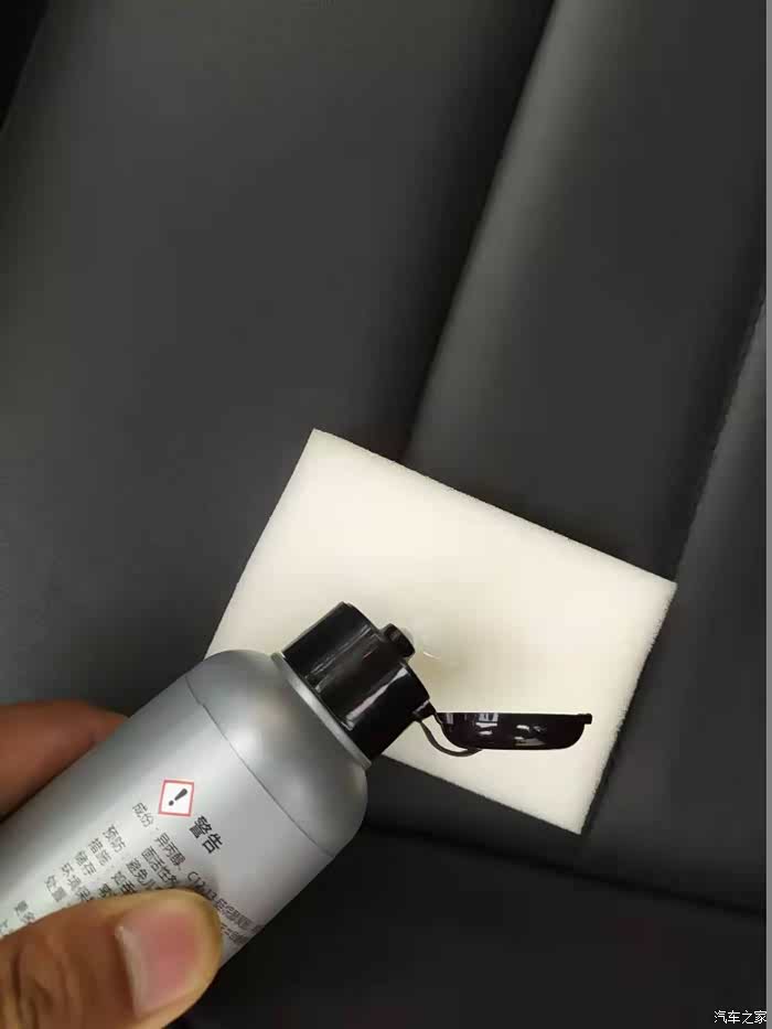 清洁完最厉害的地方后就该清理坐垫的最中间了,中间因为之前有坐垫,不是太厉害,所以稍微清洁一下就可以,先喷上。