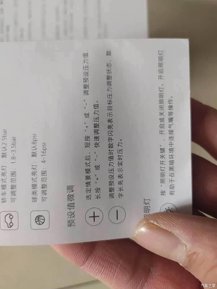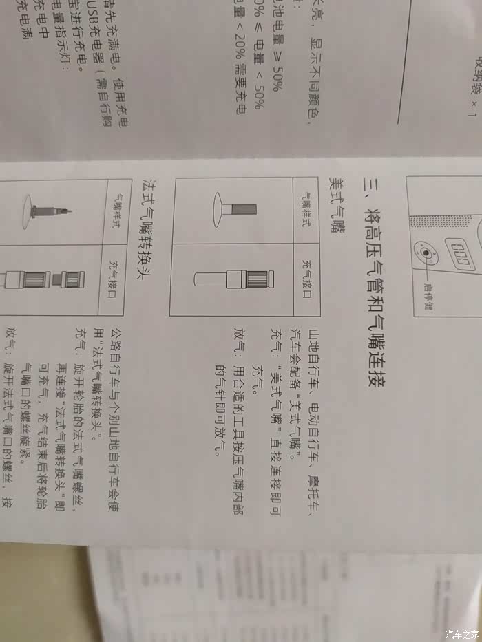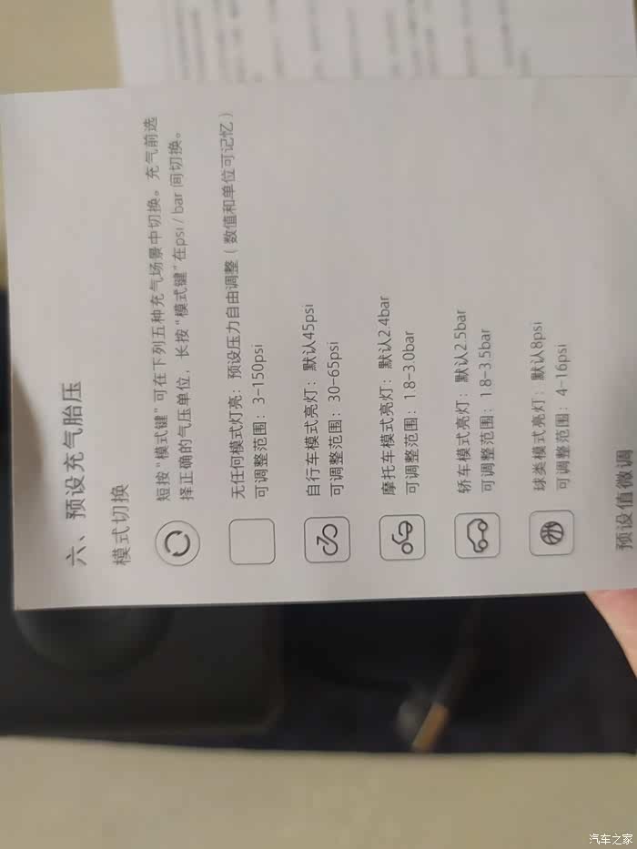 接下来就按照产品说明书对米家充气宝进行详细的讲解了,当然主要是参考设备的说明书讲解,我这件米家充气宝是黑色的外观,外形尺寸是124mm*71mm*45.3mm,说明书说明这是单独裸机的外形尺寸,然后重启的压力范围是0.2-10.2bar,换算单位是3-150psi,使用范围还是非常广泛的,包括了日常用品所使用的的气压,工作温度是0-45摄氏度,也就是说如果温度过高,产品的性能会受影响,尤其是设备侧身带有很多通风气孔,使用的时候千万不可以堵死,不然会影响设备 进气以及散热。产品的说明书上对产品的介绍说明非常详细,包括外观介绍,配件清单、使用指南,而且使用指南包括了产品的电量和使用方法,以及开机、气嘴更换、注意事项,安全操作等,另外,这件充气宝也可以用来检测胎压,只需要气管连接就可以了,非常简单。