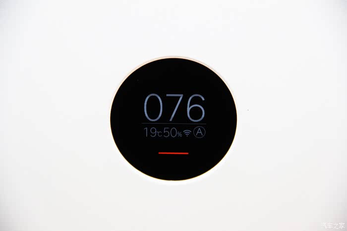 这块显示屏能够显示当前环境下的PM2.5浓度、温湿度、净化器工作档位,并且在开机时会显示滤芯剩余寿命。
