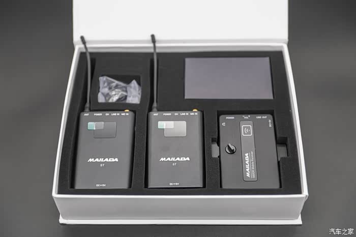麦拉达S600Pro是由一个接收机和两个发射器组成,拿到这个盒子的时候给我的感觉是质感挺不错,不过可惜一个角已经被快递稍微有些压变形,希望在快递的时候厂家能再下些功夫,一件好产品如果被快递损坏那是最不划算的。外观不多介绍,大概了解就行。