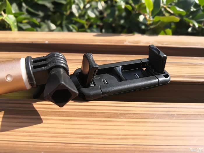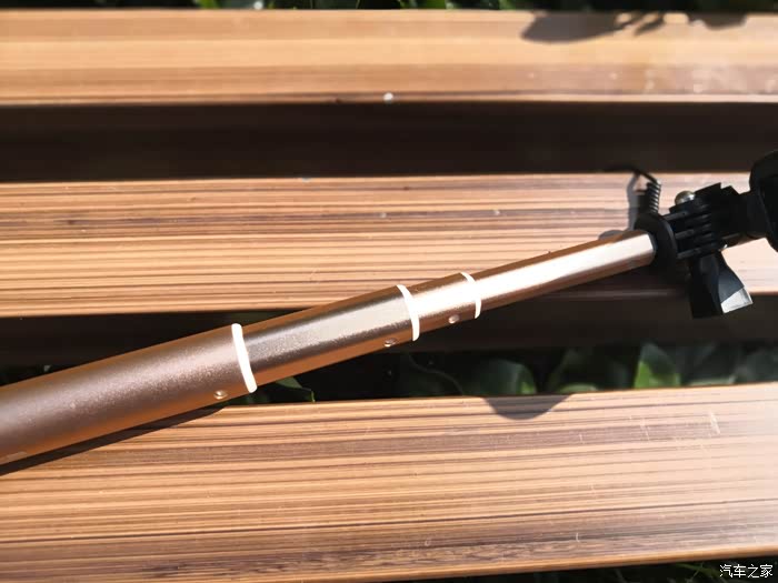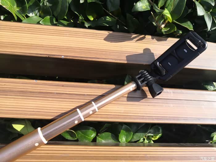 这款自拍杆在手机卡位前后都加了一块不锈钢曲面反光镜,方便使用像素更高的后置摄像头进行拍摄,这是非常实用的设计,当然如果你用华硕神拍机或oppo R9这样拥有高像素前置摄像头的手机也是可以使用传统方式自拍的,耳机线控方式,拍照没有问题。但是,好的设计不代表好的产品,先说这块“自拍镜”,放在包里非常容易磨花,虽然不太影响使用,但毕竟只用个2、3次就被磨花感觉很不爽;再说材质,从包装盒中拿出来就看到满满的金属感,最后说做工,两个字形容——考究。
