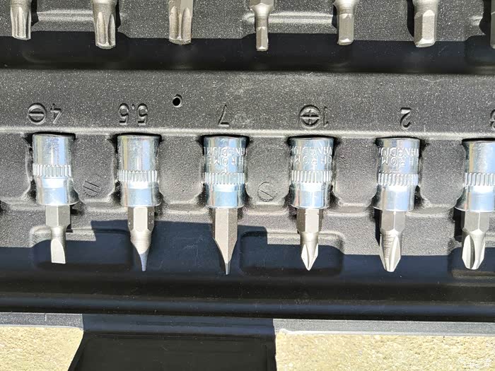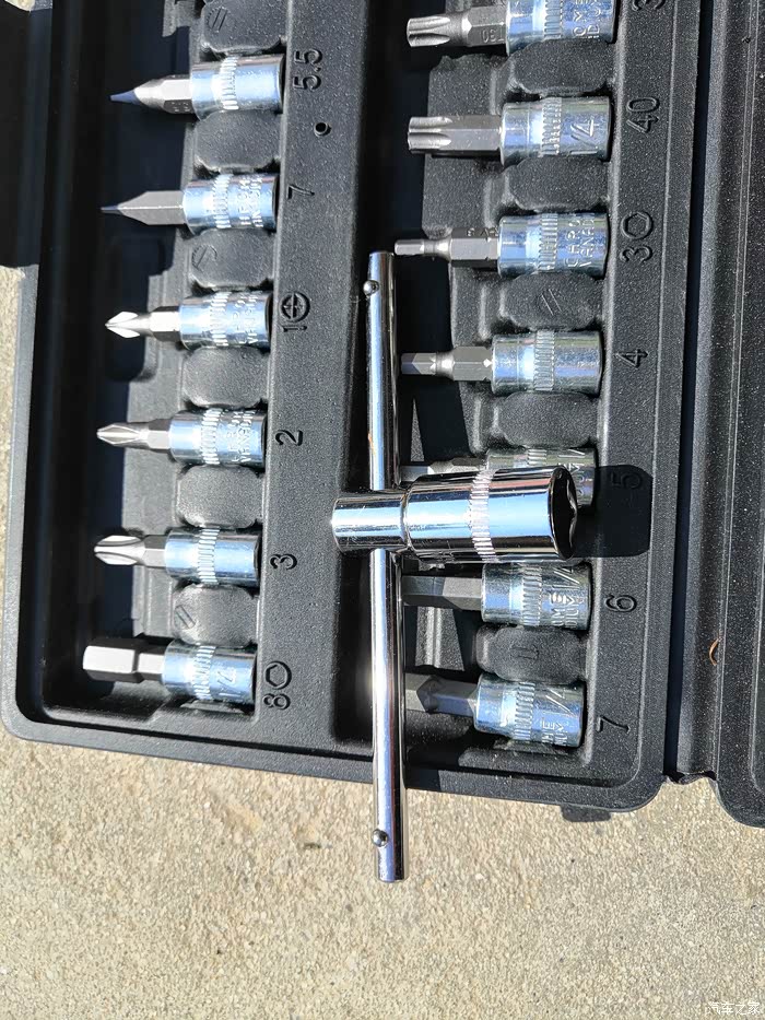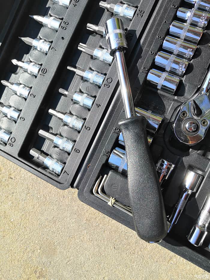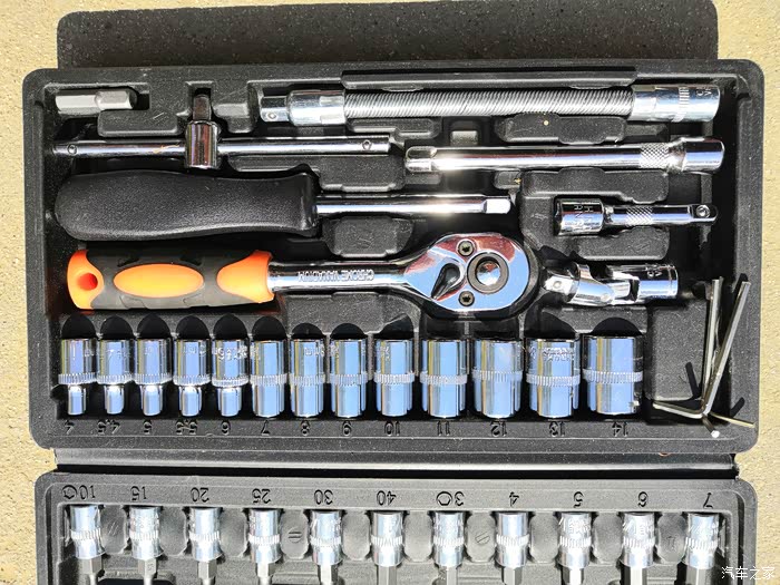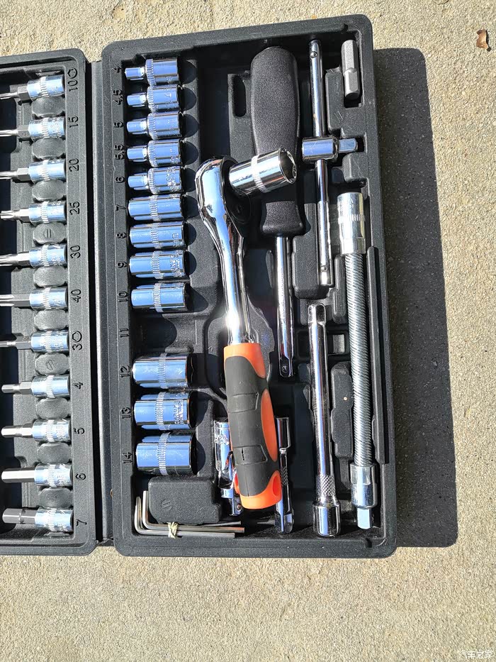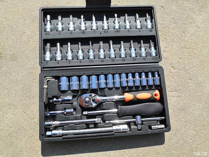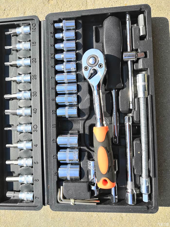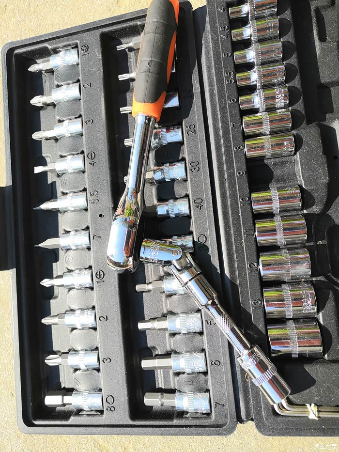 多功能工具箱套装,感觉大家买的应该不是太多,肯定也有人买,我买的这款工具箱套装,很精致,外观采用钢化塑料,不但结实而且有弹性,卡扣设计的也非常合理,批头磁性吸附在内置凹槽里,故意甩了两下也没掉下来,吸附的很牢固,儿子用它拆装了他的不少玩具,玩的不亦乐乎,也加强了他的动手能力。,家里很多小器件都可以用上非常不错的套装工具,修复精密非常全方位,居家生活必备的工具之一随然我不是专业搞维修的但是买来放在家里,修下孩子的玩具和各种小电器都很不错。且里边的配置还是非常多的,有套筒,还有棘轮扳手,螺丝刀杆儿,套筒扳手,套筒弹性连接板可以弯曲,一些不方便直接操作的地方,还有一个刚性的连接加长版,内六角扳手有四个,套筒从4号到14号,螺丝刀头有很多的,梅花刀头,内6角,十字这个螺丝刀头,还有一字的螺丝刀头,内容非常的丰富,无论是对汽车维修还是改装几乎都能起到它的作用,非常超值和实用的一种工具,也是一些手机电脑你能用到,