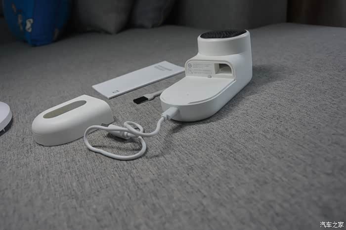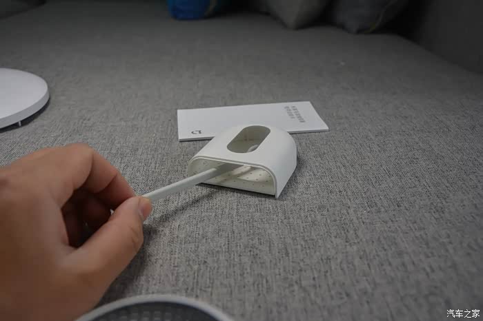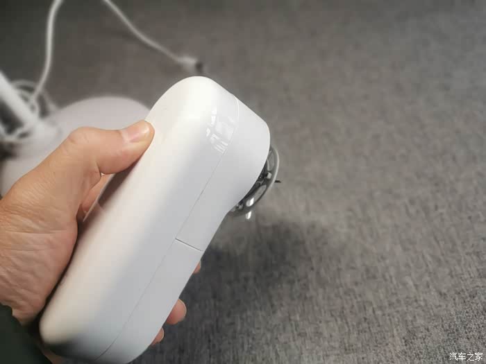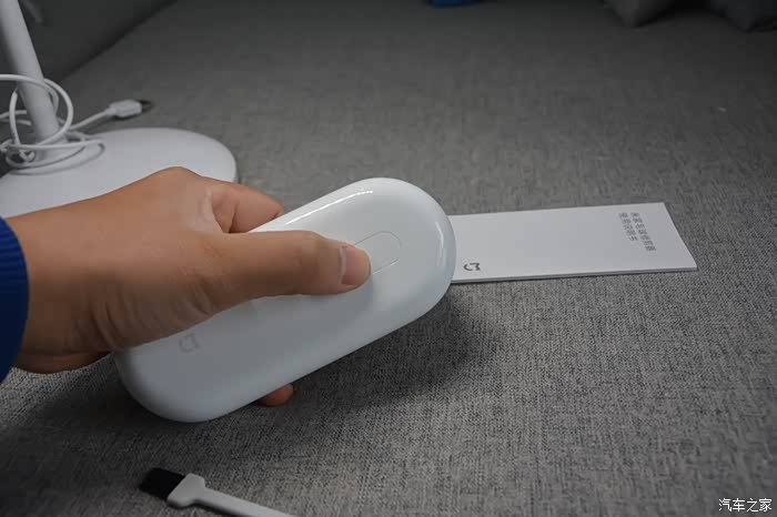 机器背面是材质为塑料材质,但采用了圆润的设计手感很好,背部包含了电源开关,米家LOGO,充电呼吸灯。
