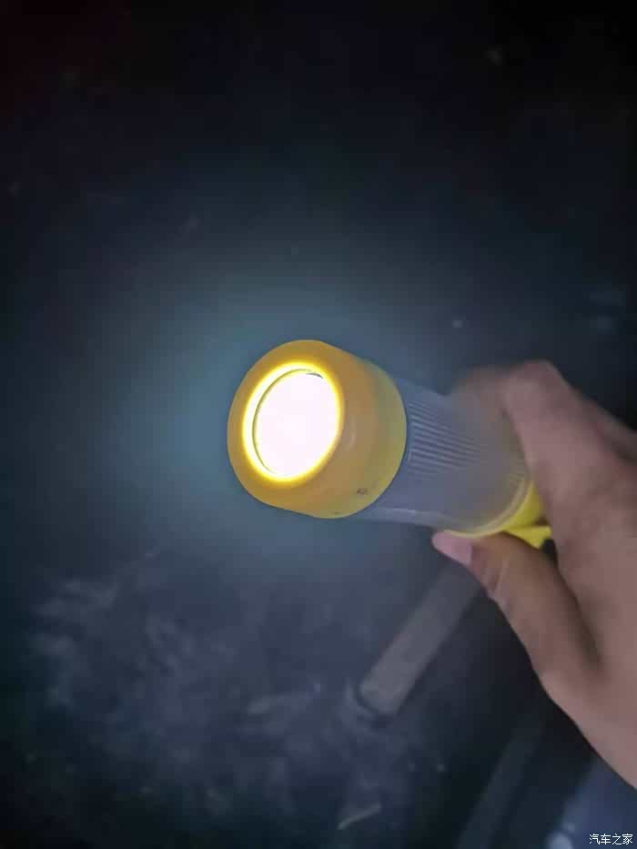 手电光亮起,这个光源亮度很不错,在夜晚使用时已经非常够用了!