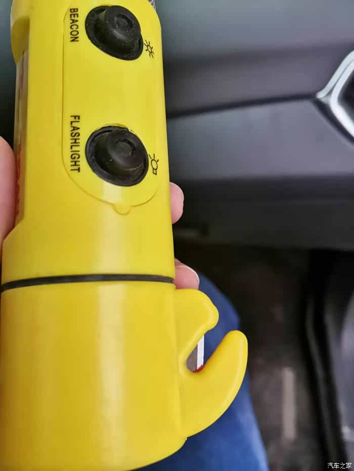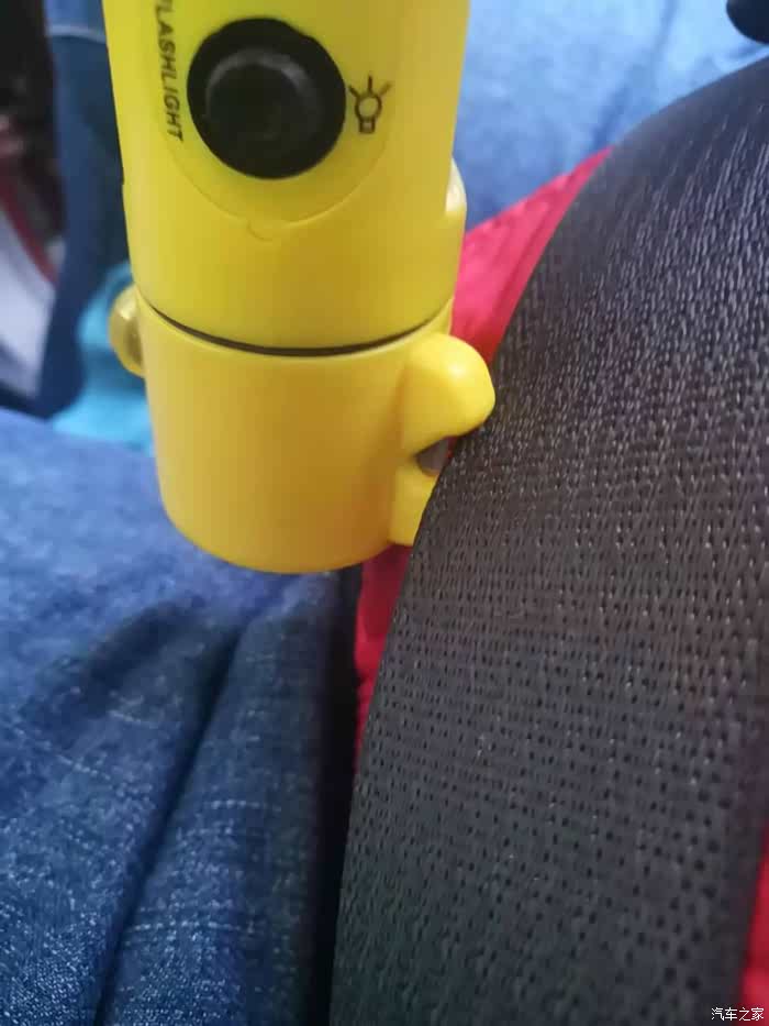 答案揭晓,这个锋利的小刀片是危急时刻用来割断安全带用的,这里设计的很人性化,既不会割到手,还能通过卡口准确的割断安全带!
