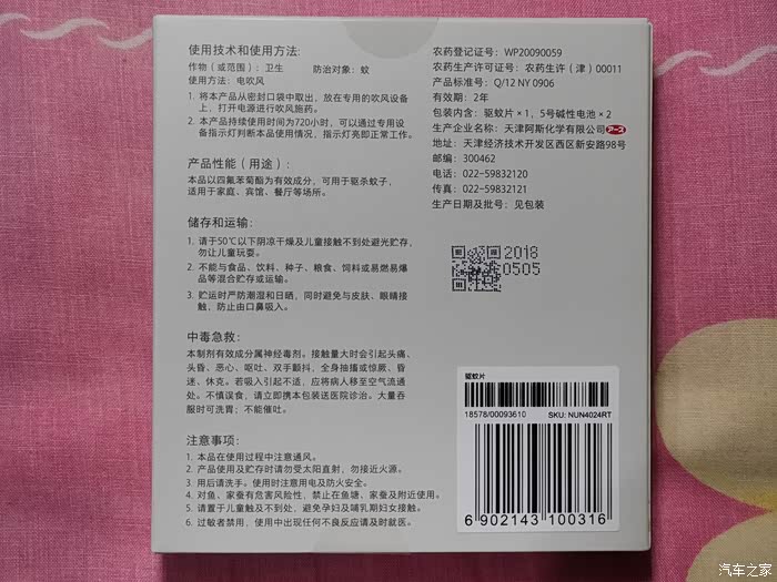 配备的驱蚊片和电池放在底部,设计独特。