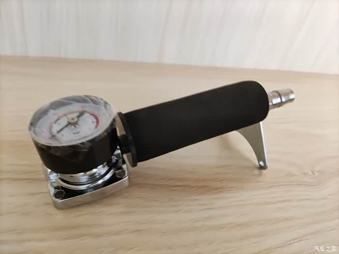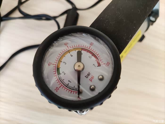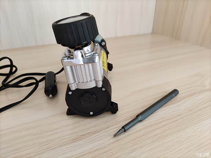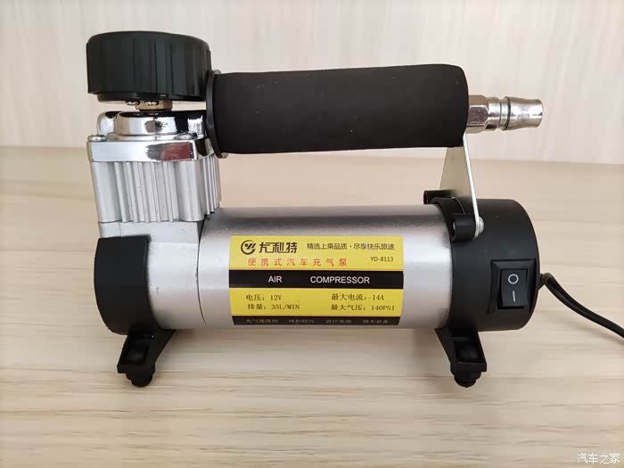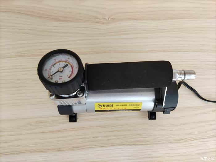 这款尤利特充气泵是用万里通积分兑换的,单独看外观,感觉底部就是一个汽缸,把手处是海绵的,只有胎压表下面这一段是铝合金材质的,整个底部都是铁的。正常充气只要连接到点烟器上就可以,启动开关,就能听到充气泵的工作声音.