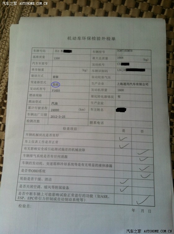 昨天去4S处理发动机渗油问题,顺便让4S代办了验车,渗油问题算是没解决,已经另开贴说明。验车过程挺顺利的,就是时间有点长,由于中午违章收费处休息,所以上午没办完手续,因此还蹭了4S一顿饭,下午继续交罚款,领取年检合格证和环保标志。