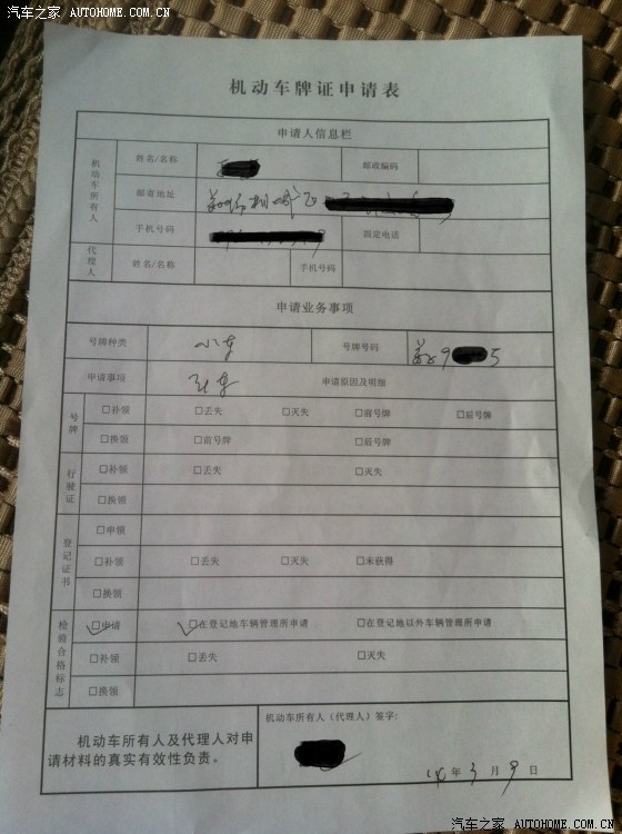 因为整个过程由4S店代办完成,如有出入,请车友指正,谢谢!