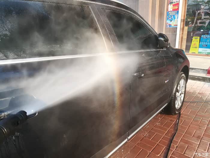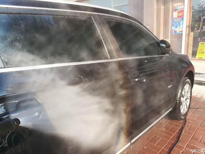 第七步 打完泡沫后,依然是从上到下,全车冲洗。特别是车顶一定要冲干净,不要留下沙粒杂物等,以免下次开启天窗后造成密封不严导致天窗漏水。