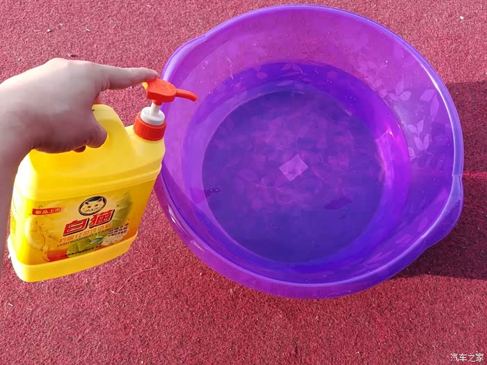 第三步 预备一盆清水,加入洗洁精后备用(我没有用水蜡)。