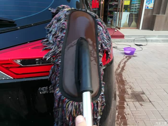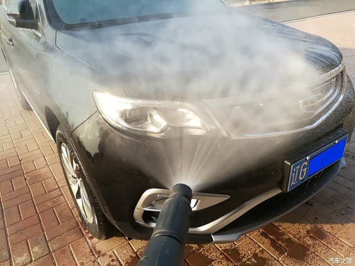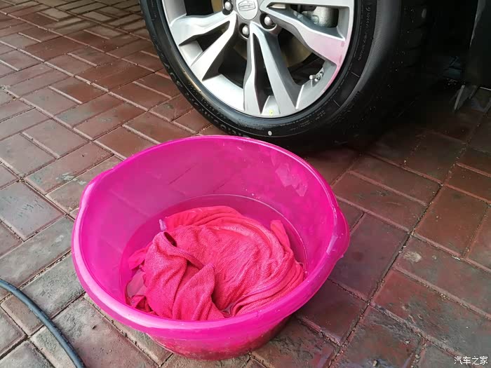 第九步 下面水枪可以休息了,清水和毛巾开始上场,抹布浸水后拧干,将博越全身擦拭干净,以免留下水印。