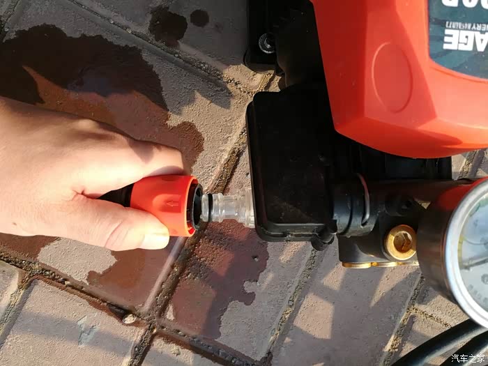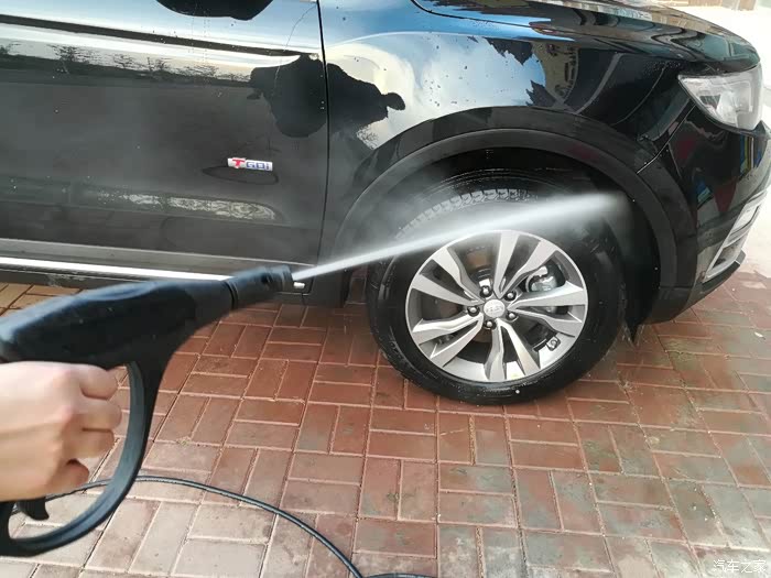 第八步 泡沫冲洗干净后,将水枪喷头顺时针旋转,调节成强力水柱。一些缝隙处可能藏污纳垢,给我用力的冲。