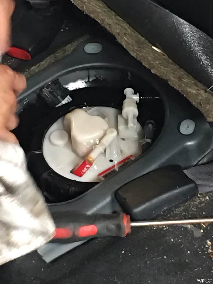 油箱里有近三分之二的油,拆汽油泵时,油都溢出来了,建议车友以后换汽油泵最好剩余三分之一油时更换。