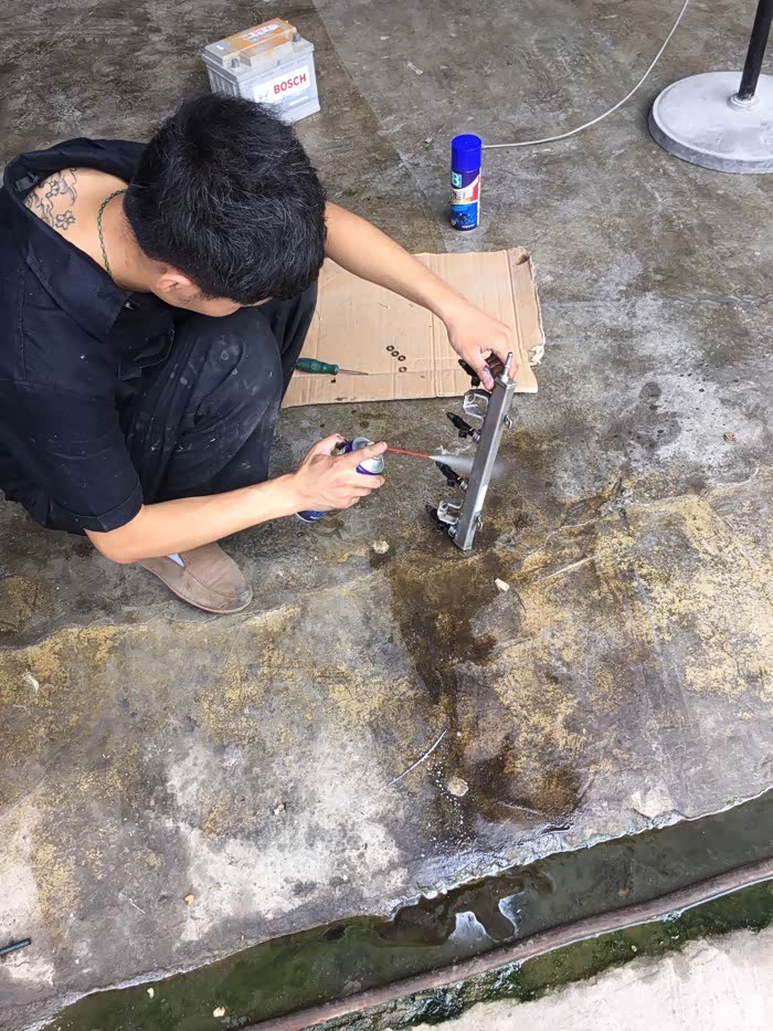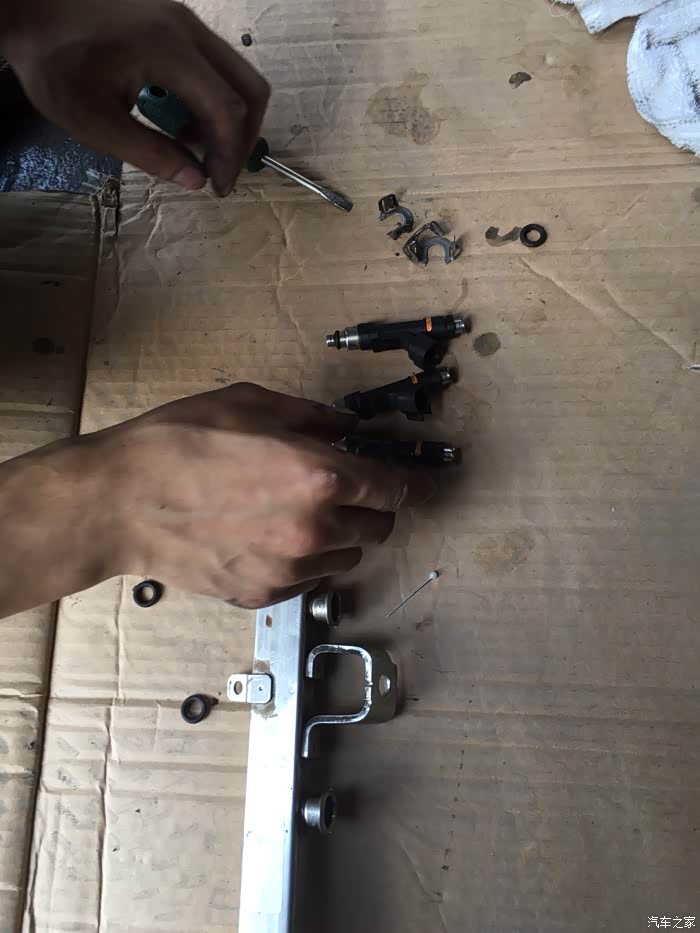 四个喷油嘴拆下来准备个别清洗