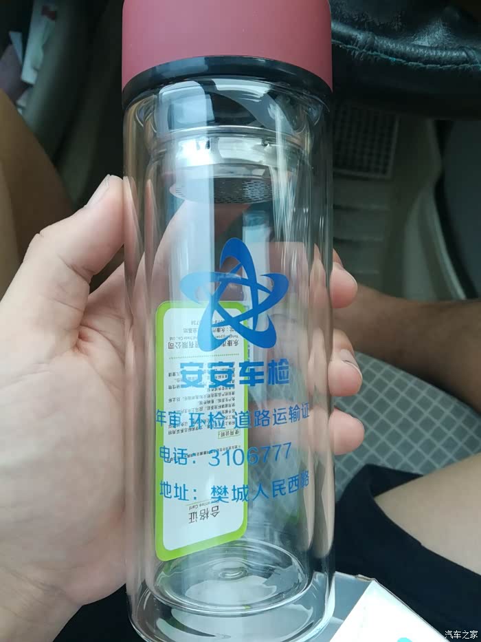 车检还送杯子,现在做生意难啊,促销都到车检了,咱这回也是爷。还说十月份抽奖,哈哈。