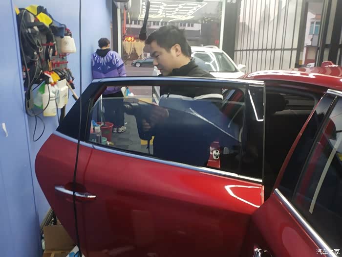 师傅在贴膜进行中,我就不干扰他们了,等大工告成给大家分享感受。