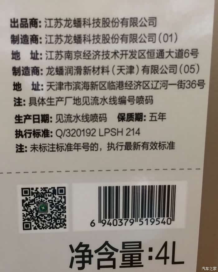 身边朋友有用过龙蟠别的型号的机油,找他拍了些照片。