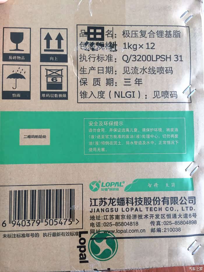 积压复合锂基脂,锂基脂是一种固态润滑油,因为其色泽,也就是常说黄油,广泛用于机械密封,润滑,防锈材料。通用锂基脂就是一般的润滑油,用于机械部件的润滑,具有润滑防绣作用。极压锂基脂相对高级,用于有压力的机械部位的润滑,但也可用于常压部位的润滑。锂基润滑脂与极压锂基脂的区别;就是在锂基润滑脂中增加了极压物质,使其性能更好了。外包装箱信息应该不是此次机油产品对应的包装箱 但是作为汽车小白还是充分的了解了下,写出来分享。