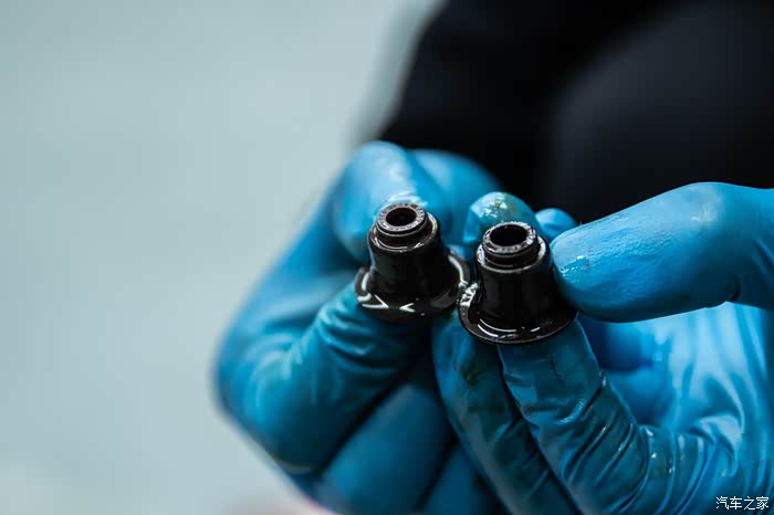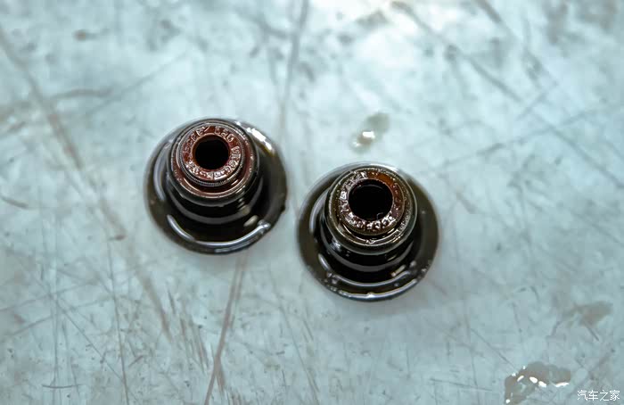 对比来看,图左是新配件,图右是已经老化有泄漏的油封。无论内外,车上的橡胶配件在多年使用后,都会有不同程度的老化,失去弹性后同时失去了密封效果。
