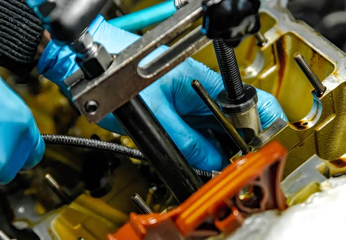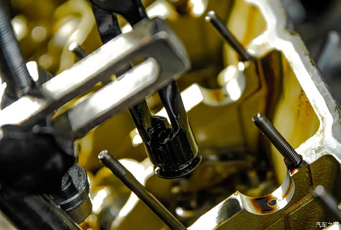 由于下气门的位置在不拆卸的情况下,需要顶起,便需要用专用工具打气,将气门顶起,才可以拆下气门油封。