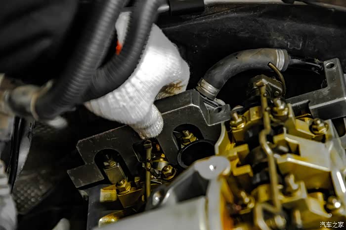接下来就要寻找解决缸体内烧机油的病源了。要找到下部的气门,先把偏心轴进行锁死。