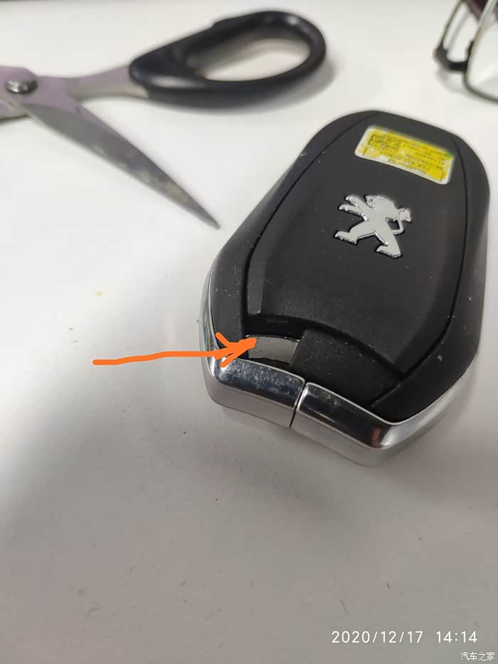 要拆下的是钥匙上有标致狮子的那个后盖。