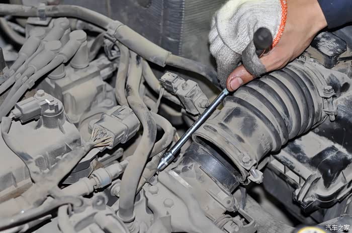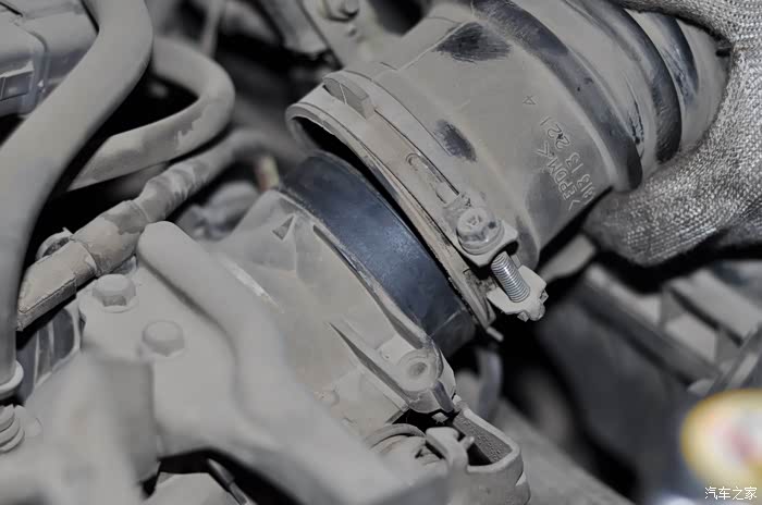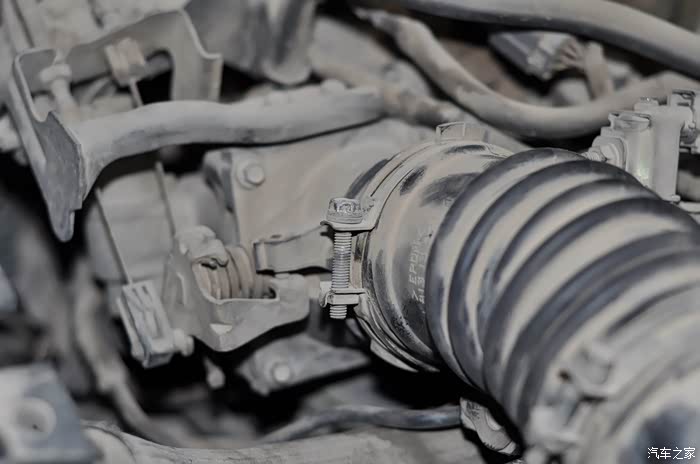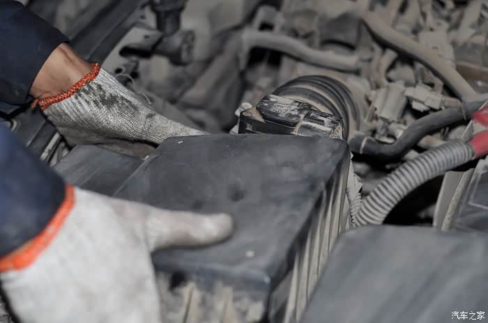 首先,把空气滤清器拆下来,上盖是没有螺丝的,就两个卡子。