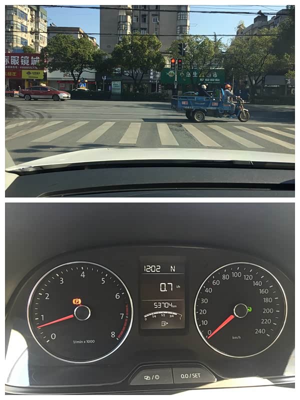 可是一百多公里高速跑下来,车怠速“发抖”的情况依然没有消除。看看,在路口等灯时,刚经过保养后的老狼,怠速油耗也不高,转速正常、指针也不抖动,就是“突突”的间断车“发抖”好生郁闷。好吧,只有再次去4S查查了,看看到底是什么问题。
