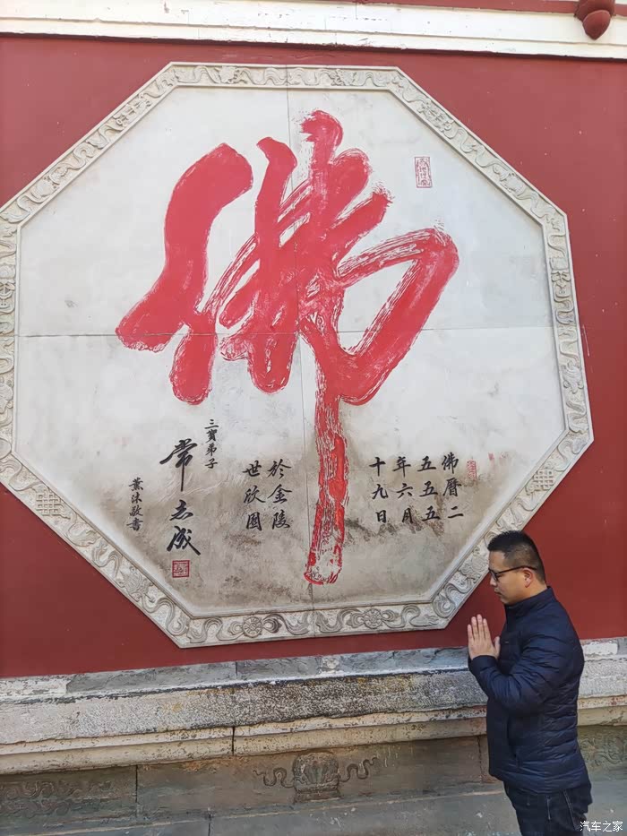 在这样的环境里,我们都没有嬉闹,都在用心感受这里的佛教气息!当看到墙上大大的佛字时,我留下了这样一张照片!