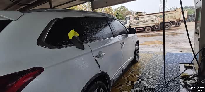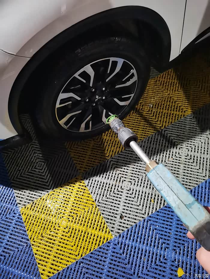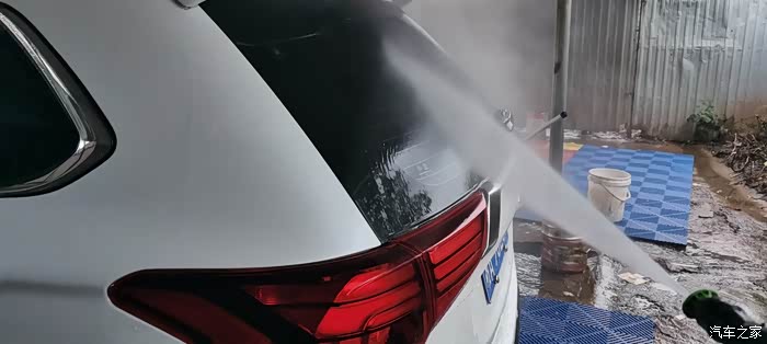 这洗车运动了20多分钟,一开始感觉有点冷,现在身体早就热起来了,生命在于运动哈哈哈。现在再用水枪把欧蓝德冲洗干净。